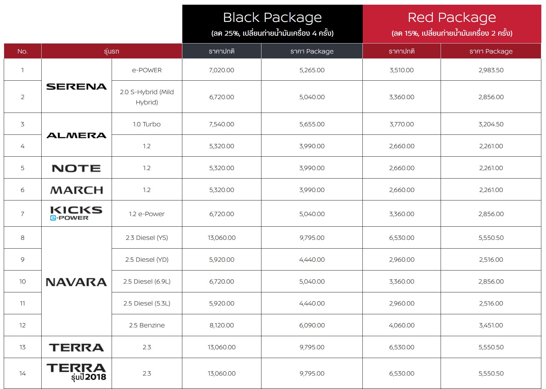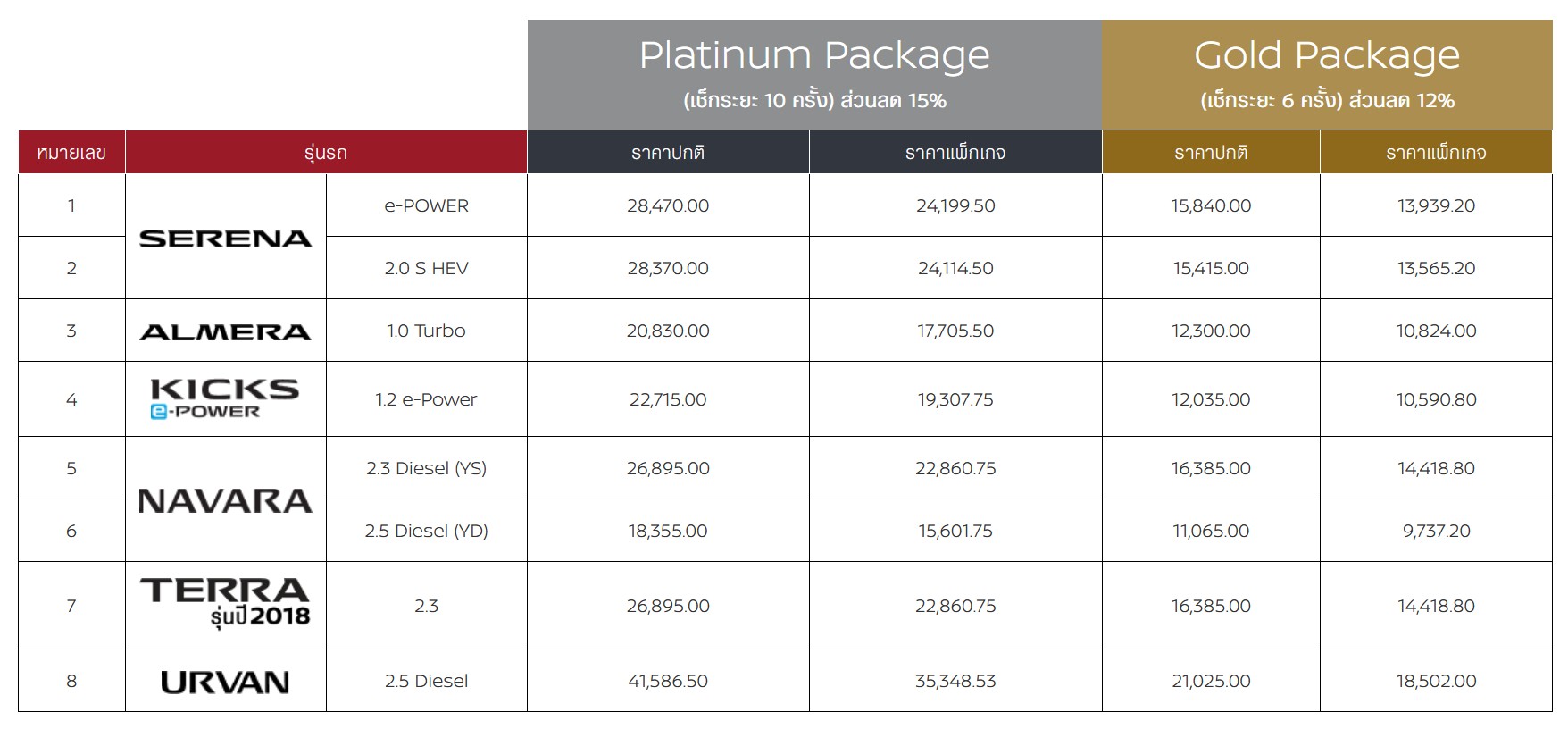 สําหรับรุ่น อัลเมร่า ใหม่ ตั้งแต่ระยะ 7,000-42,000 กม.