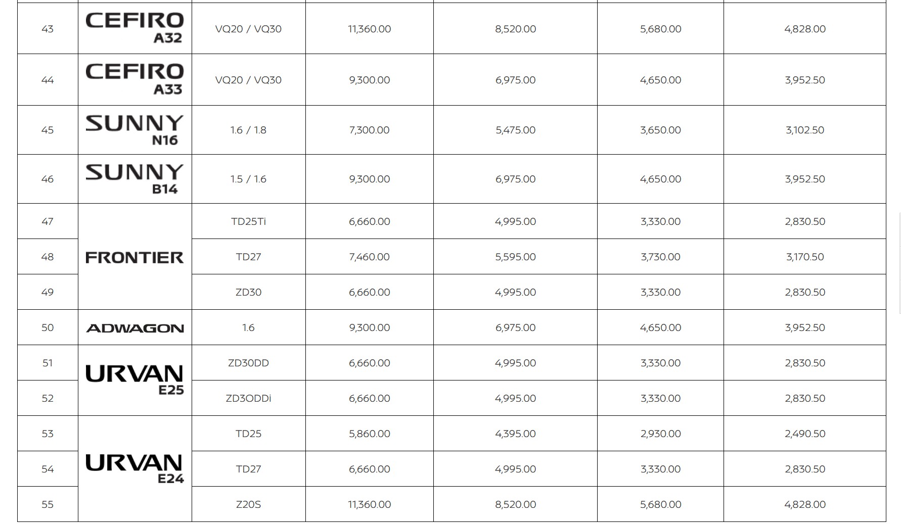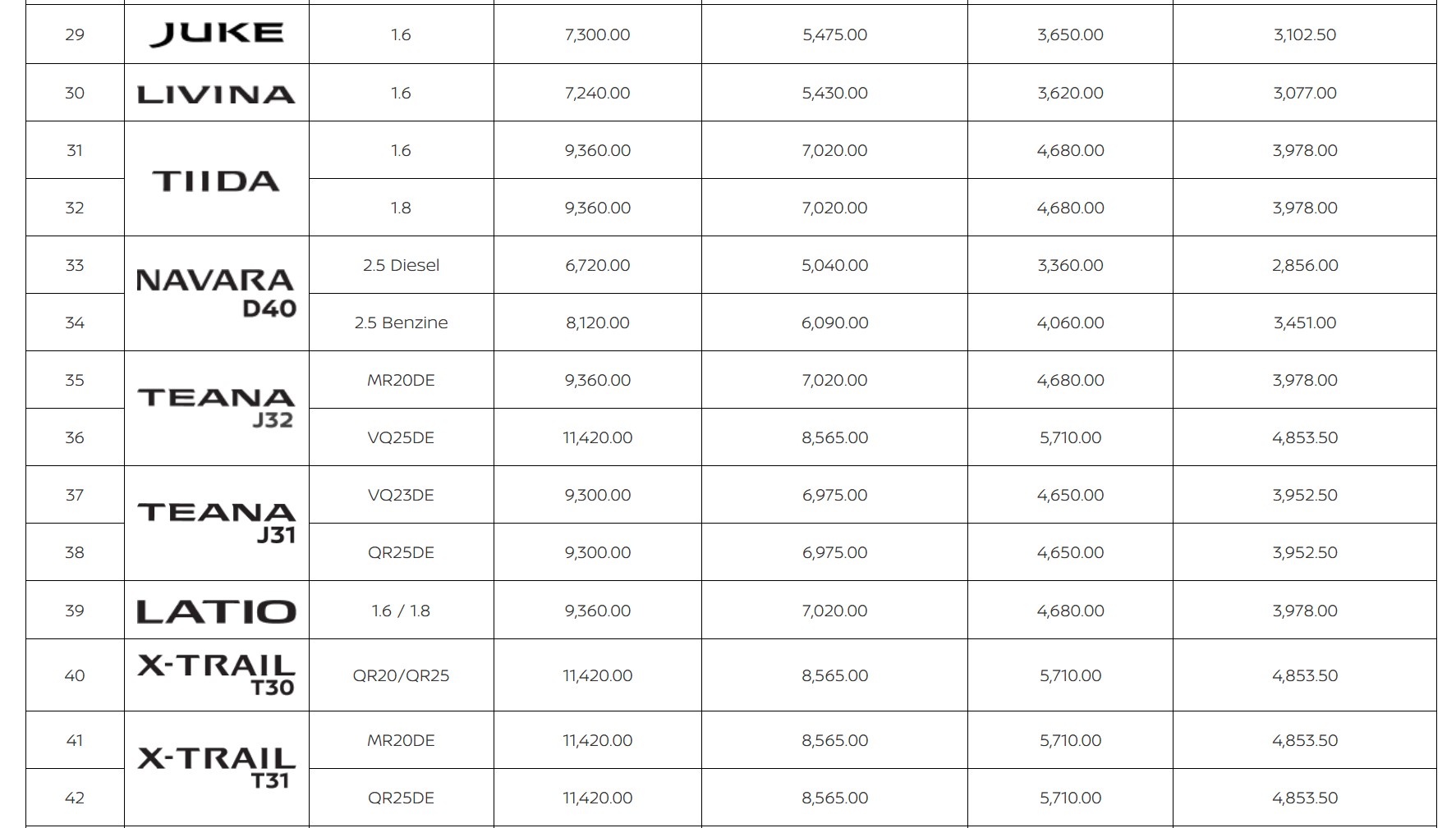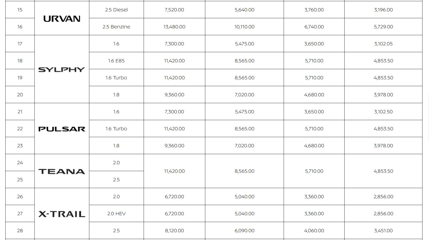 (SERENA (S-Hybrid/e-POWER), ALMERA, KICK e-POWER, NAVARA, TERRA, URVAN)