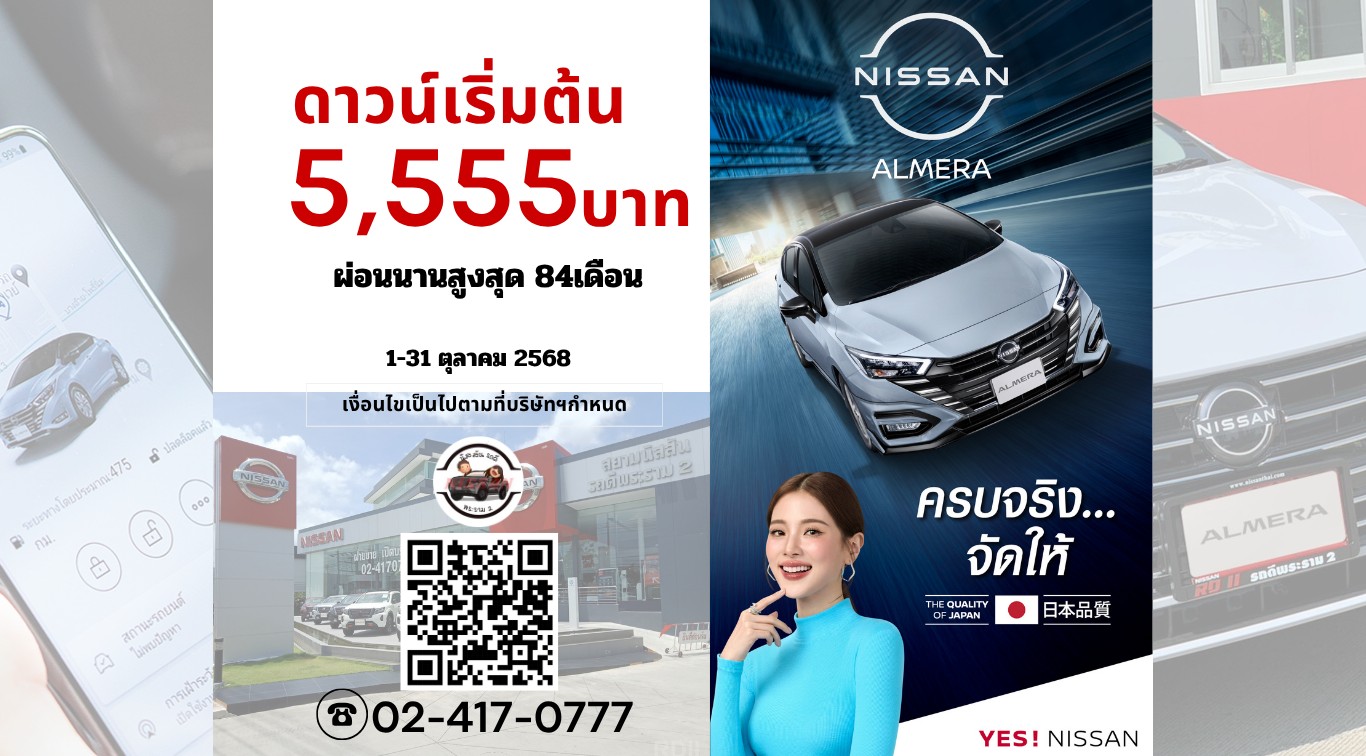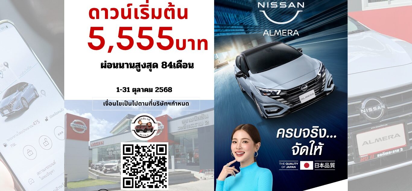 โปรโมชั่น NISSAN ALMERA ดาวน์เริ่มต้น 5,555 บาท