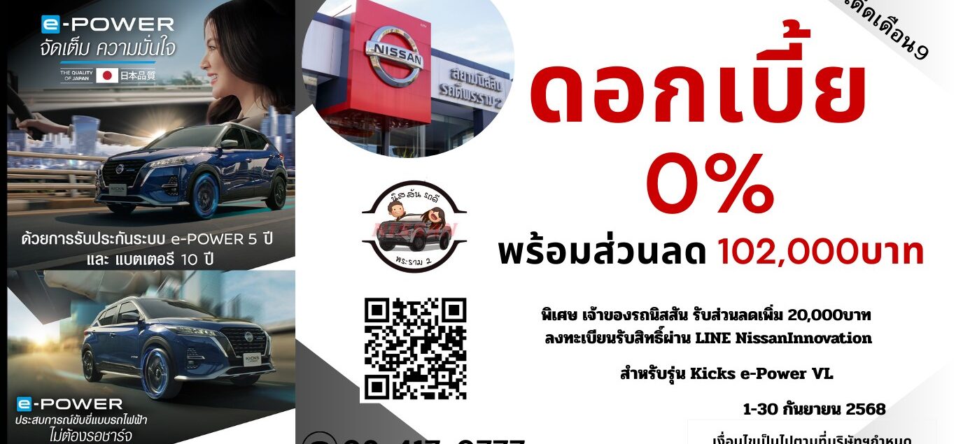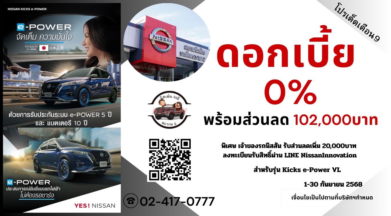 โปรโมชั่น NISSAN KICKS e-POWER ดอกเบี้ย 0%