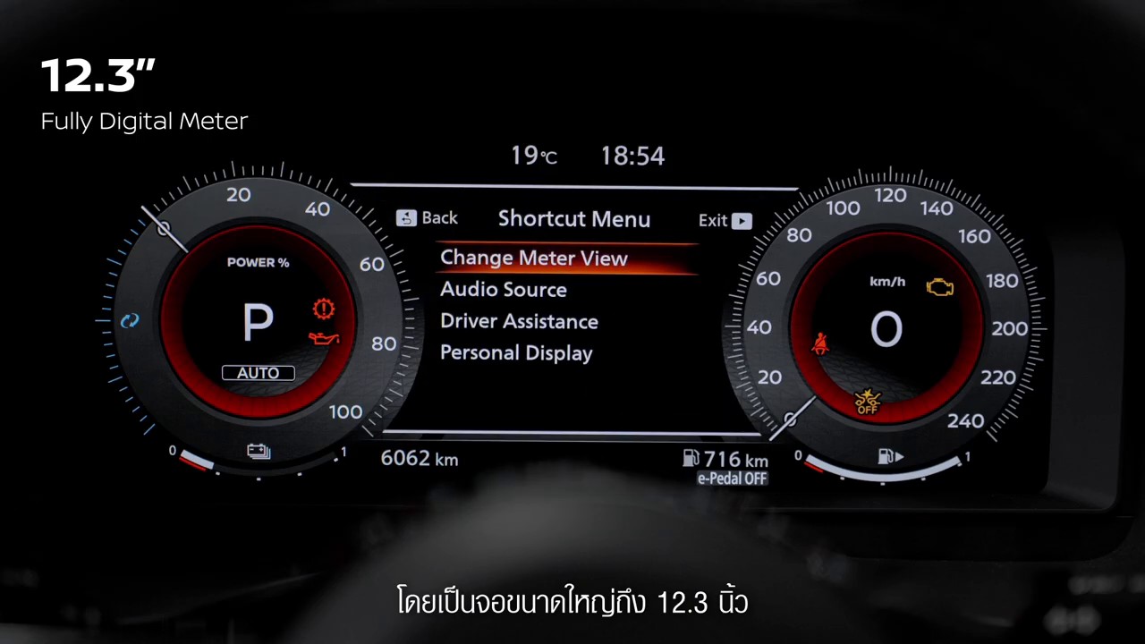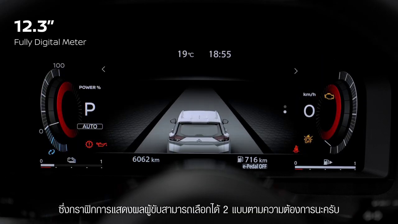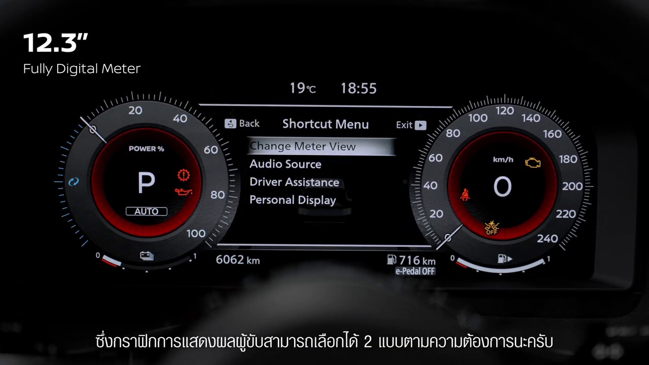 หน้าจอแสดงผลหน้าผู้ขับ มาตรวัด ออกแบบเป็น กราฟิกแบบดิจิทัล จอขนาดใหญ่ 12.3 นิ้ว ผู้ขับสามารถเลือกกราฟิกการแสดงผลได้ 2 แบบ